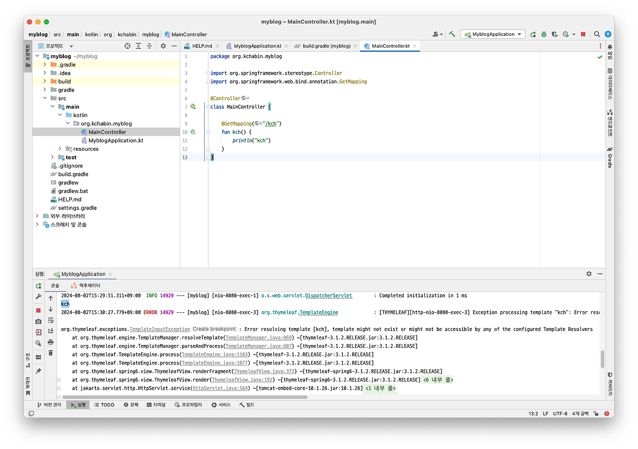 @ResponseBody를 생략하면 'kch'라는 문자열을 리턴하는 대신에 해당하는 이름의 템플릿 파일을 찾는다.